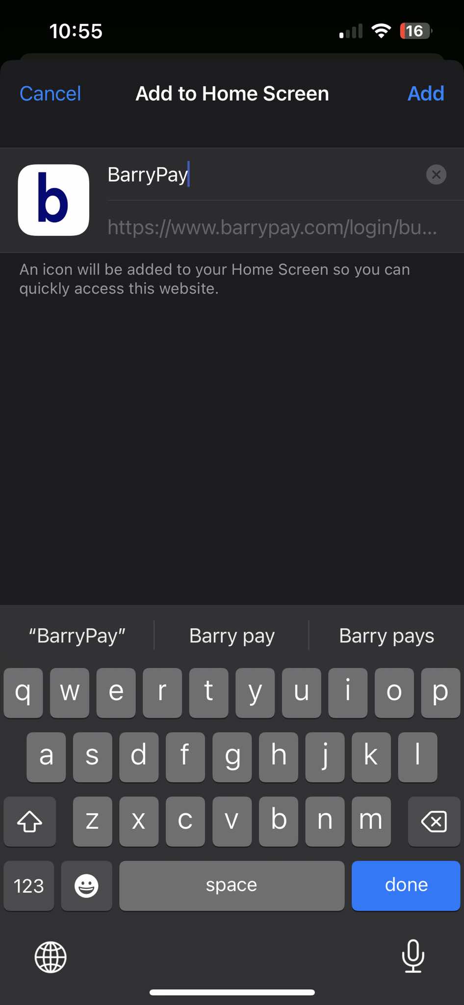 BarryPay is a web app and just like a normal app you can add this to your home screen.